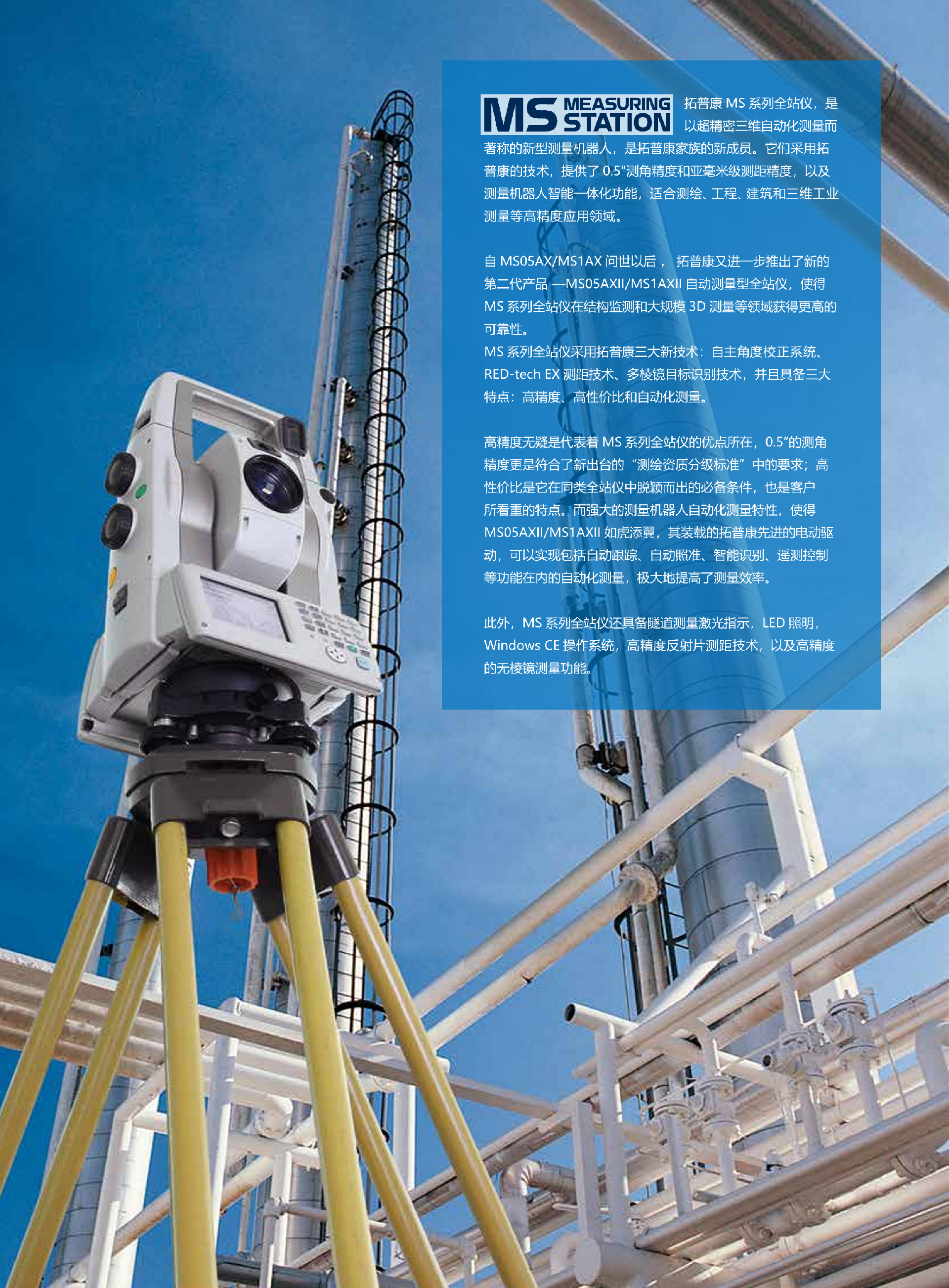 MS05AXII是第二代0.5″超高精度全站仪,拥有多项创新核心指标。为精密测量、变形监测、工业检测等高、精、尖领域提供高精度保障。作为拓普康最可靠的测量机器人,每天24小时为地铁、大坝、桥梁、矿山安全保驾护航。